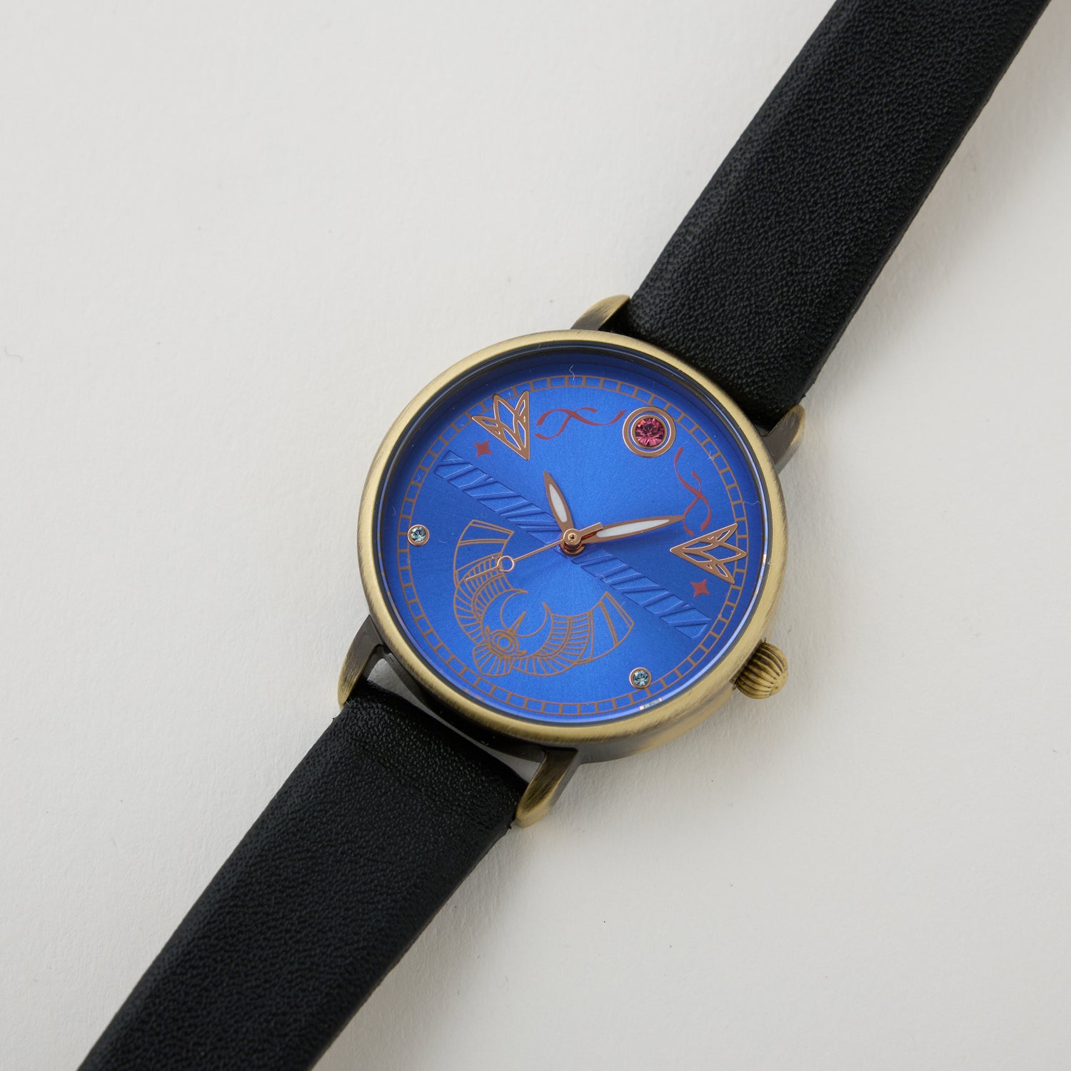 アンティークゴールドのケースに、衣装のような瑠璃色の盤面が広がります。