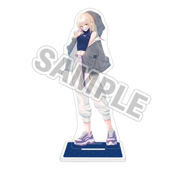 コラボアイテムを身に着けた、レトロの描き下ろしイラストを使用したアクリルスタンドが登場です。