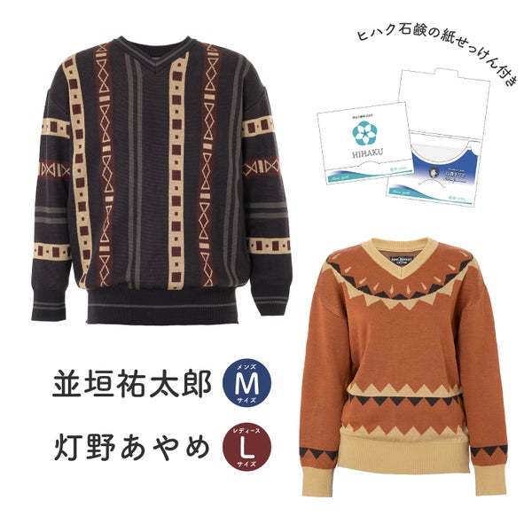 並垣祐太郎[メンズM]&灯野あやめ[レディースL] セーター2種セット(ヒハク石鹸紙せっけん付き) パラノマサイト FILE23 本所七不思議