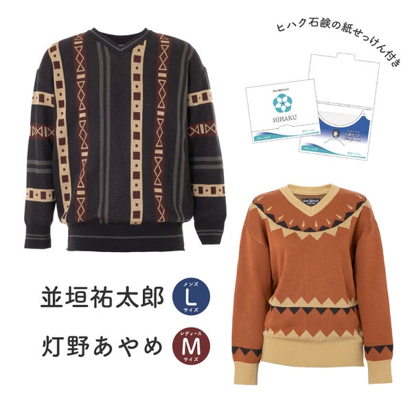 並垣祐太郎[メンズL]&灯野あやめ[レディースM] セーター2種セット(ヒハク石鹸紙せっけん付き) パラノマサイト FILE23 本所七不思議