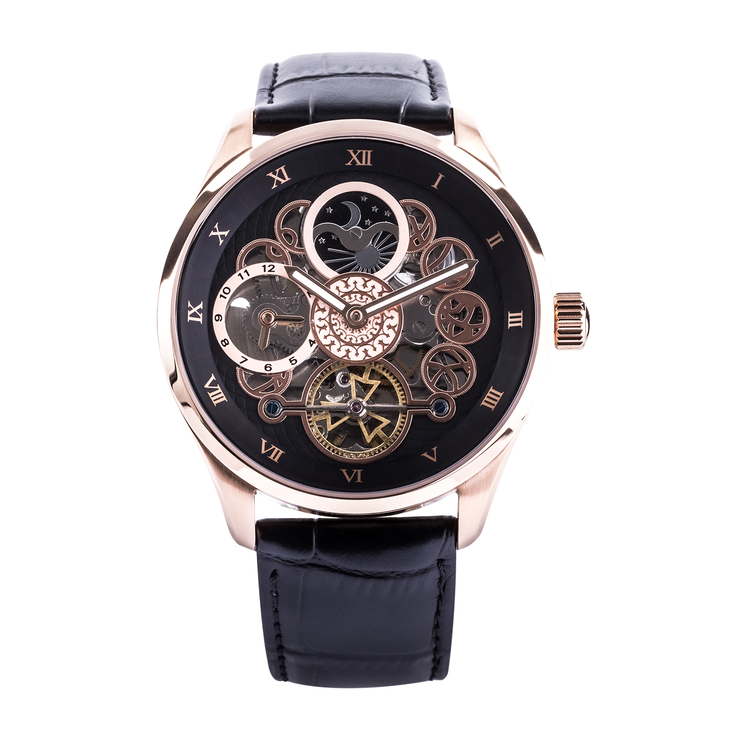 また、腕時計の心臓部とも言えるテンプなど、通常は見ることのできない内部構造まで目視出来るその仕上がりは、まるで啓蒙を高めた狩人(ハンター)のよう。